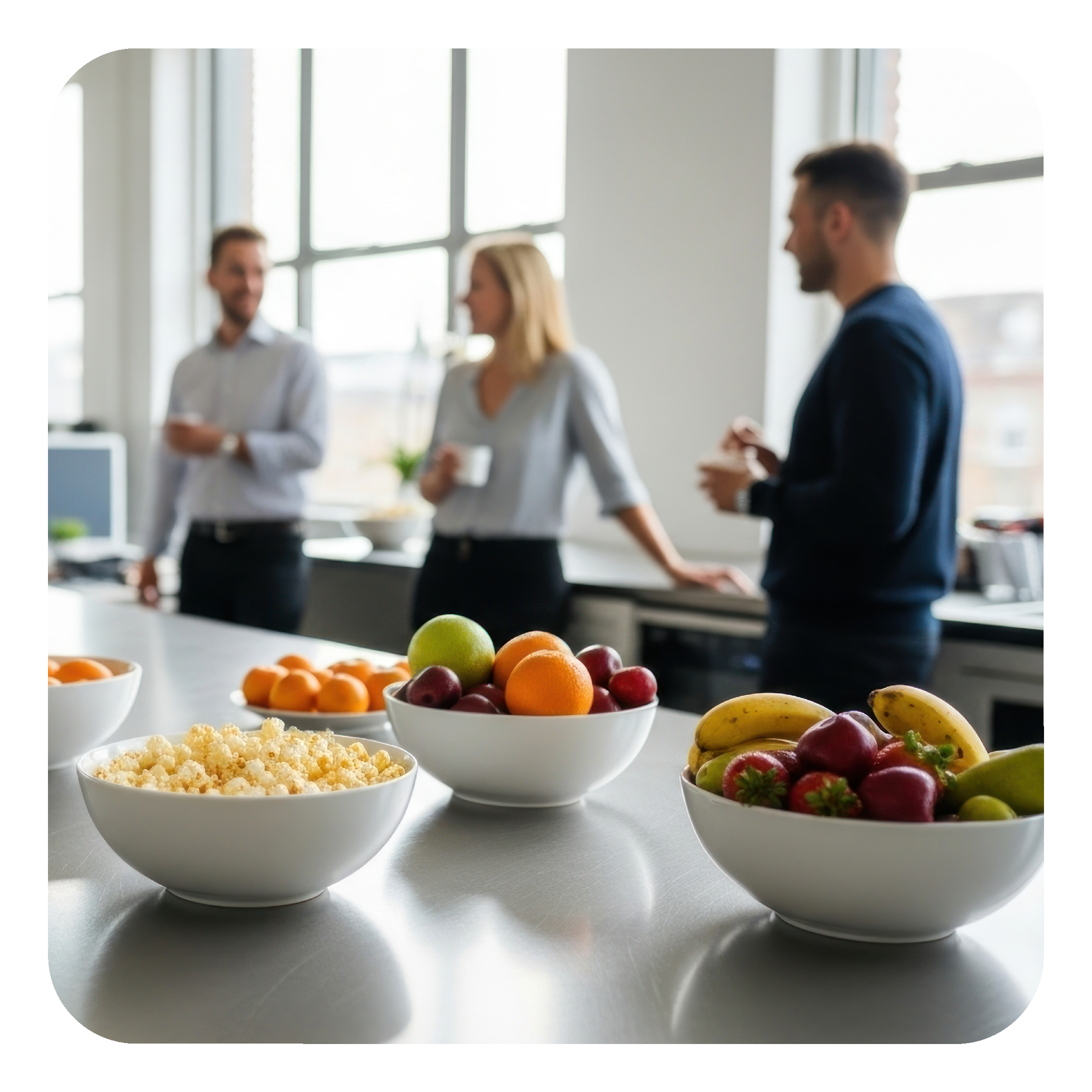 An office pantry is a fully stocked breakroom where snacks, beverages, and essentials are provided complimentary to your employees as a workplace perk. Pantry programs are funded by the employer and offer curated items that employees can enjoy throughout the workday.